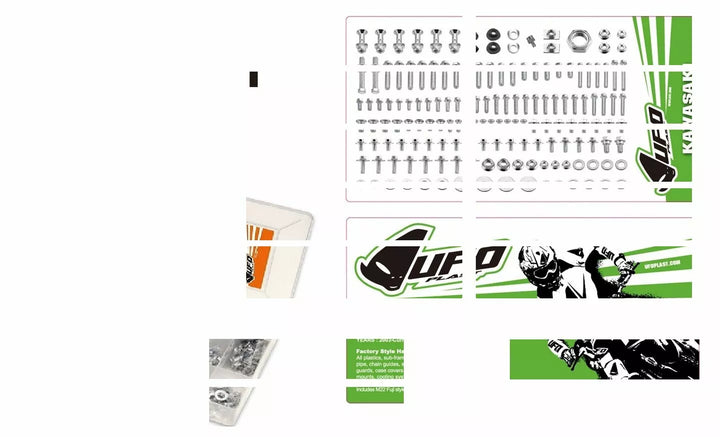 Factory Style Hardware Kits Fastens: All Plastic, Sub-Frame, Brake System, Exhaust Pipe, Chain Guides, Sprock, Skid Plate & Guards, Case Covers, Triple Clamps, Bar Mounts, Cooling System, Axel Pinch Bolts, Seat and More