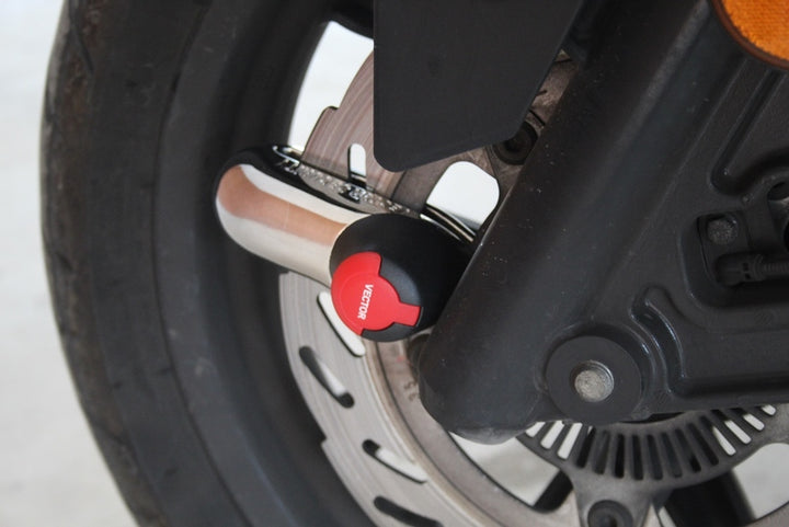 Vector Block One is a durable and reliable disc brake lock, made in Heat treated monoblock steel for maximum protection against theft. With one 10 mm lock bolt and automatic locking mechanism, is this lock Easy to use and provides strong protection for motorcycles and scooters.