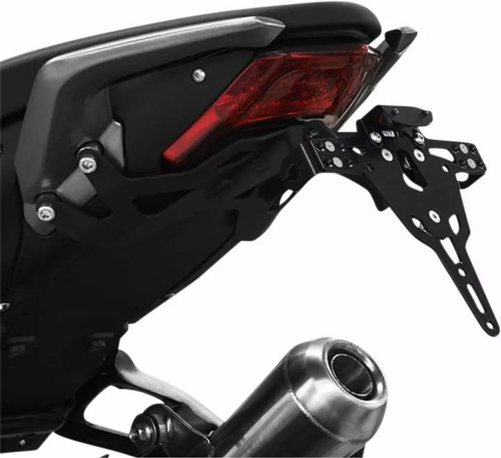 The License Plate Holder is Extremely Durable and Weather Proof., Black Powder Coated. , The License Plate Holder Can Be Used For Any Kind of License Plate (175mm Width)., No Modification of Fairing Required., Stepless Adjustment of Rake Angle., Indicator Support Adjustable in 3 Positions. Plate., Special Indicator Light Mounts (Sold Separately) Required for Stock Indicator Lights., Kit Includes: 1 License Plate Holder Incl. Mounting Kit., LED License Plate Light "E Approsved" Incl. Support., Back Light With Support. Of: Germany, Slovenia, Croatia & UK.