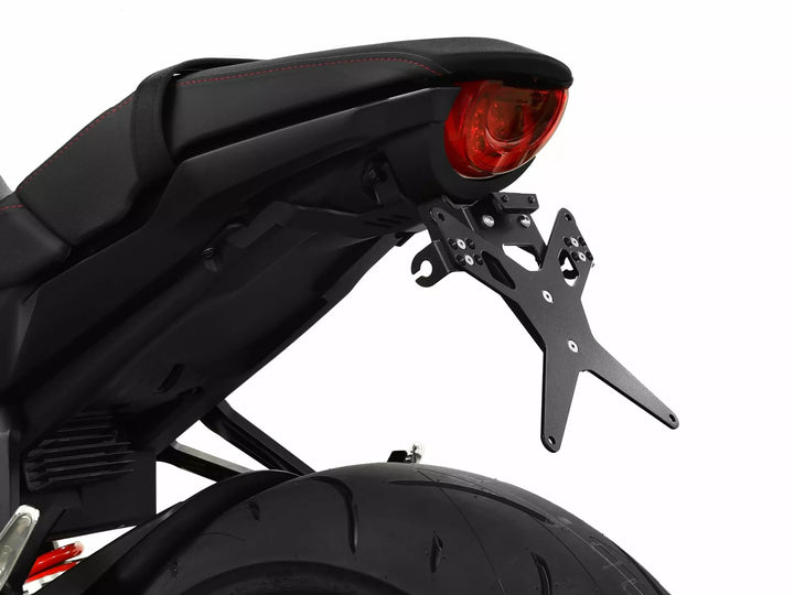 The License Plate Holder is Extremely Durable and Weather Proof., Black Powder Coated. , The License Plate Holder Can Be Used For Any Kind of License Plate (175mm Width)., No Modification of Fairing Required., Stepless Adjustment of Rake Angle., Indicator Support Adjustable in 3 Positions. Plate., Special Indicator Light Mounts (Sold Separately) Required for Stock Indicator Lights., Kit Includes: 1 License Plate Holder Incl. Mounting Kit., LED License Plate Light "e Approved" Incl. Support., Back Light With Support. Disclaimer: Important: For the use of this license Plate Holder with the oem Turn Signals of Ducati Models (2015 - Present) A Special Holder is Needed (Zieger Turn Signal Adapter and Duc. Parts Europe Part Number: 20301971. Vendor Number: 10005790).