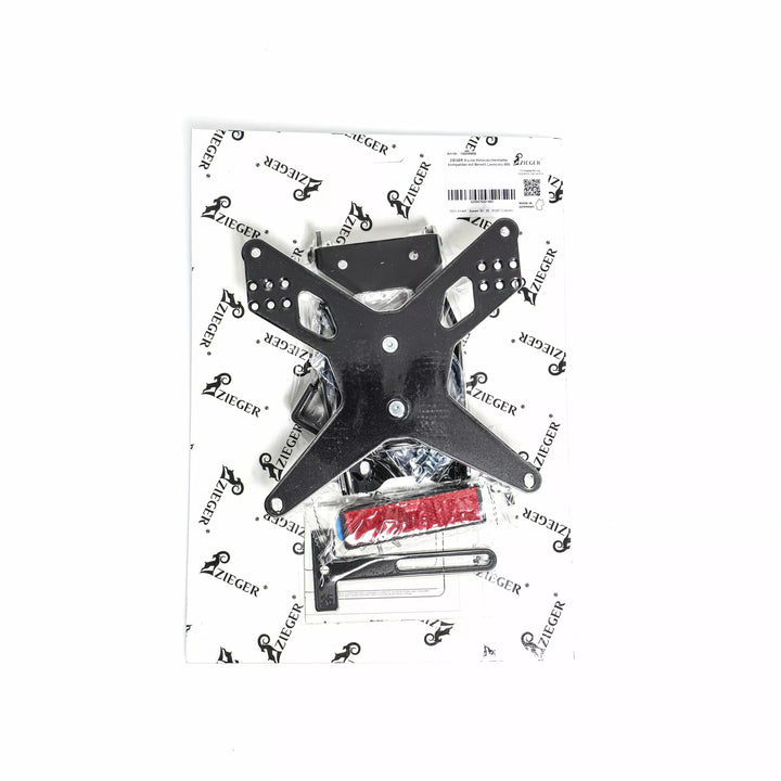 no cadding parts need to be changed, The license plate holdable for every type of license plate (width 175 mm), black powder-coated, angle of inclination is fully adjust Countersunk for a Flat Support of the License Plate