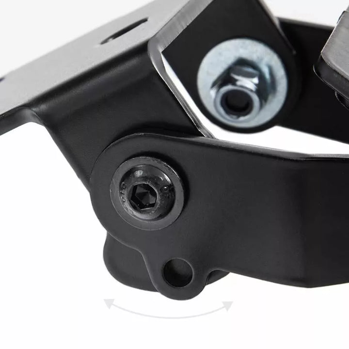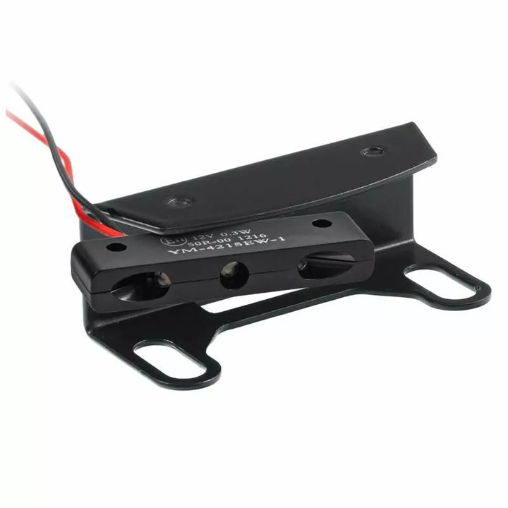 The License Plate Holder is Extremely Durable and Weather Proof., Black Powder Coated. , The License Plate Holder Can Be Used For Any Kind of License Plate (175mm Width)., No Modification of Fairing Required., Stepless Adjustment of Rake Angle., Indicator Support Adjustable in 3 Positions. Plate., Special Indicator Light Mounts (Sold Separately) Required for Stock Indicator Lights., Kit Includes: 1 License Plate Holder Incl. Mounting Kit., LED License Plate Light "e Approved" Incl. Support., Back Light With Support.