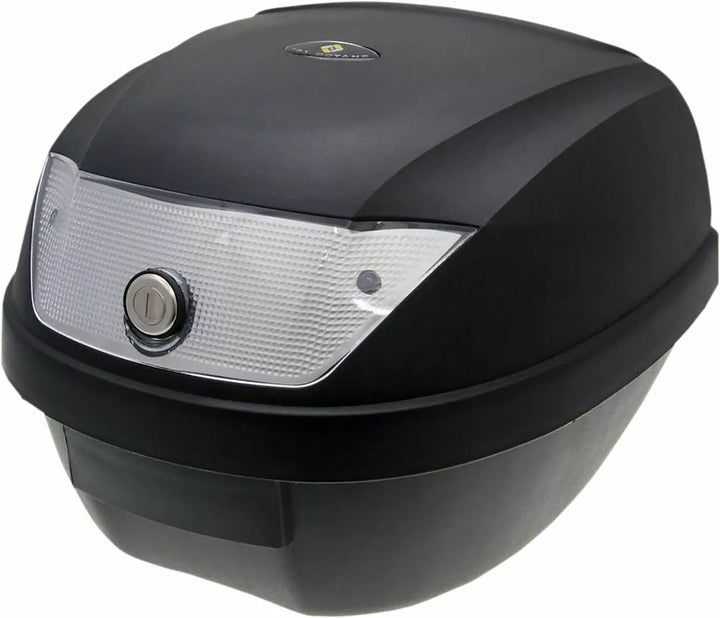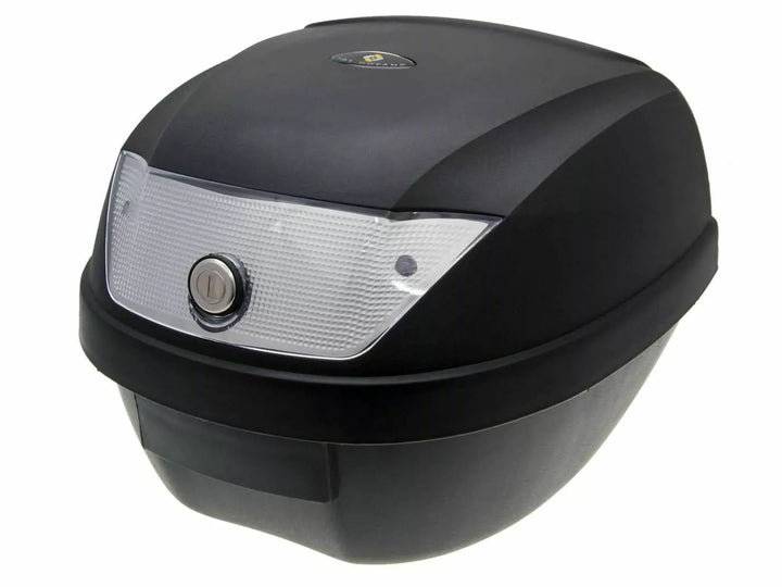 Universal topboks, sort plast, med lås. Leveres med 2 taster og monteringsbase, let at sikre dit køretøj og hurtig frigivelse.
