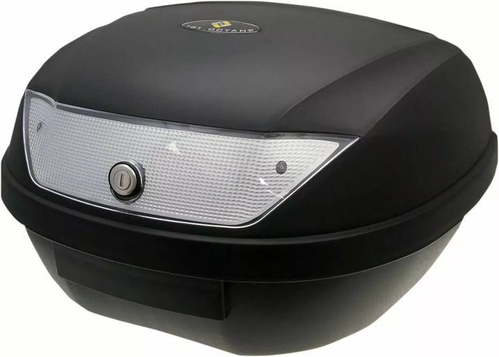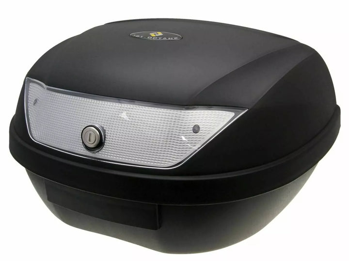 Universal topboks, sort plast, med lås. Leveres med 2 taster og monteringsbase, let at sikre dit køretøj og hurtig frigivelse.