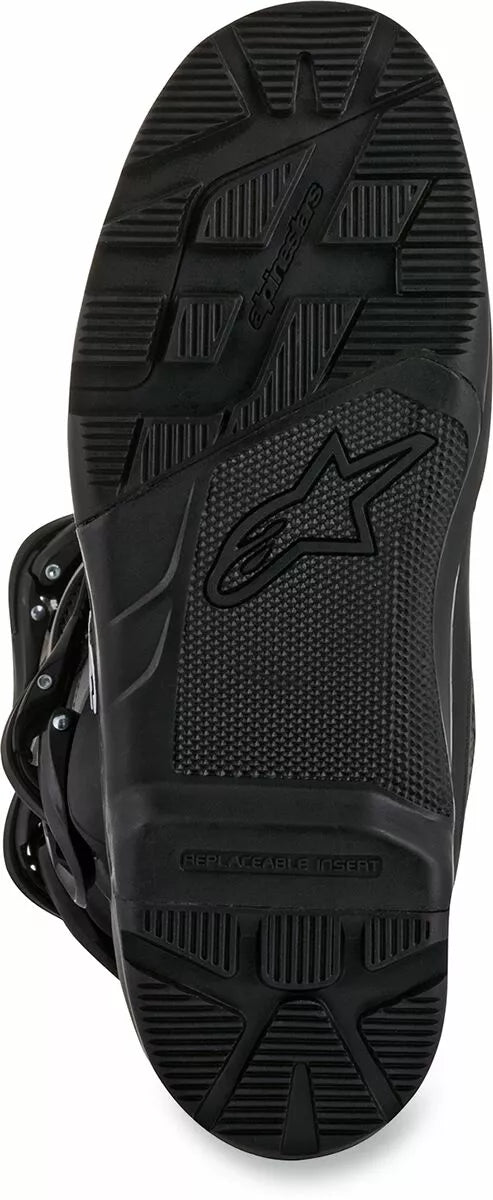 Boot øvre konstruktion er et innovativt, let mikrofibermateriale, der er fleksibelt og slidbestandigt, let mikrofiber på for- og bag bellows giver et mere behageligt flexområde, tåboksen er lavet af syntetisk materiale til høj slidbestandighed hjælper med at forsegle vand og snavs, kontureret termoplastisk polyurethan (TPU) kalvevagt, TPU højere medial vagt, tpu outer lateral ankle beskytter og TPU For påvirkninger er bagerste TPU Gaiter Patch Appl Impact Resistance på det bageste flexområde, injiceret TPU-shinplade forbundet med TPU-medialt beskyttelsespanel, kroge-og-loop-øvre bagagerum med TR-klap, der giver en bred vifte af pasform og støtte, TPU højere medial Protation Design Biomechanical Medial System Pak ind glat fra den forreste flex og medial beskyttelse til sidesiden af bagagerummets flexibili-polymerspænder med ratchet-lukning, spændehukommelsessystem og hurtig frigørelse/låsesystem med et selvudviklingsdesign, alle bagagerum er udskiftelig, ét stykke tpu indsprøjtet dobbeltbuksefod er forstærket med at omgive anderne og bagager Udskiftelig EVA-fodseng med tekstil topforing, Alpinestars All-Terrain Sole Design med høje høje gummiforbindelser; Sål kan udskiftes