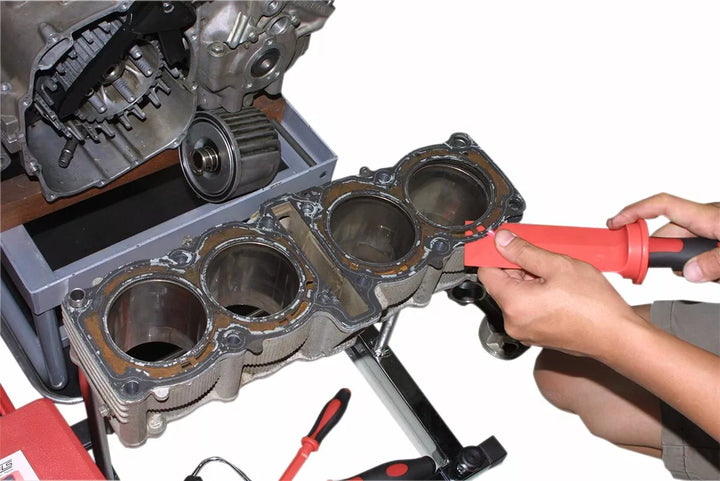 Holdbart håndtag, der er egnet til brug med en hammer, hvor der er behov for ekstra kraft, reducerer skader på overfladen af bløde metaller og maling, ideel til fjernelse af badges, pakninger, striber, mærkater osv.