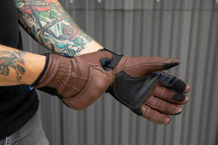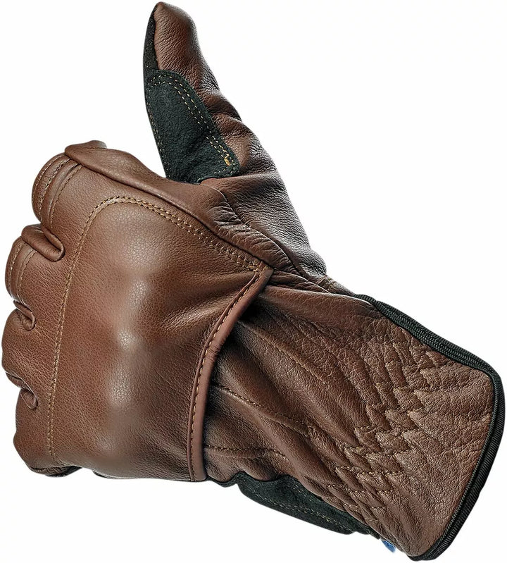 100% kohudkonstruktion på udvendig for holdbarhed og slidbestandighed, ruskindsviklingszoner med strategisk polstring til påvirkningsbeskyttelse, vind- og vandbestandig intern termisk barriere for varmt og tørhed under kolde forhold, fugtvagt Fleece flex og tilføjet holdbarhed, internt påvirket plastpolstringsknog, bred elastisk velcro-watchure med termoplastisk gummi Biltwell-pull-lodt, smart screen-comppatable tyndkompatibil Fingerspidser