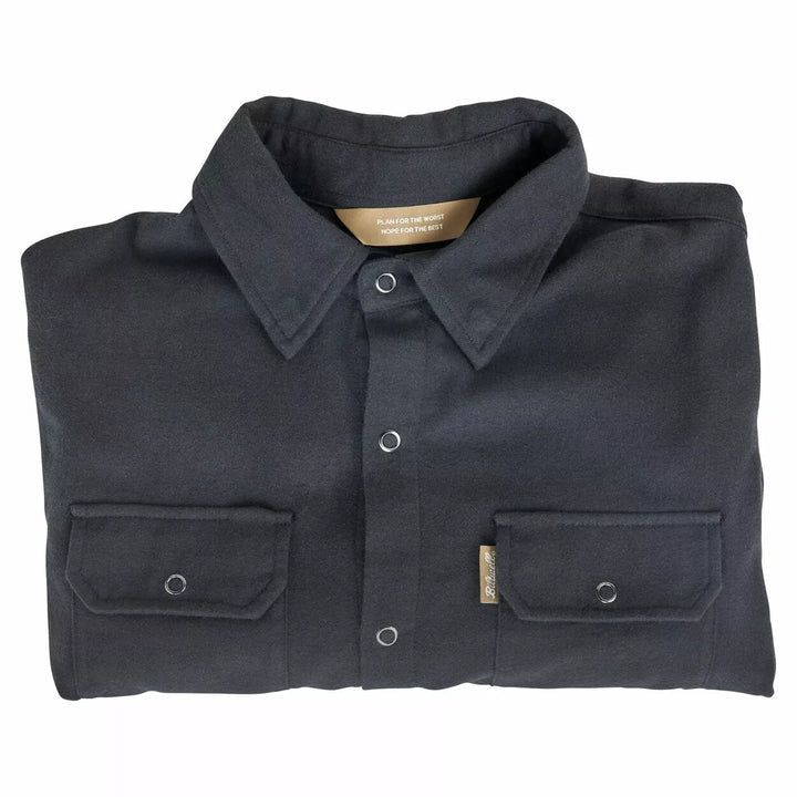 Komfortable 6,5 ounce 100% tungvægt bomuld., Snaps på plak, manchetter, krave og lommeflapper er udpladet rustfrit stål., Black Pearl Snap Detailering, der er vist på plaid colorways., Kravetips har skjulte snaps for at eliminere flapping. Nede over håndled., Brystlommen har diskret slot for let opbevaring af is., Polyester-single-receivele, dobbelt-modtager og overlåser syning igennem., Broderede indvendige tags og udvendig branddetaljer.