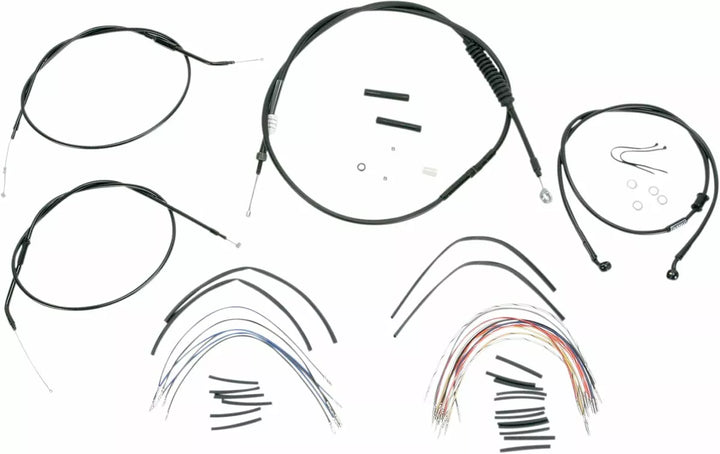 Komplet installationssæt til burly abe-bøjler, sæt inkluderer udvidet bremselinie (medmindre det er angivet), udvidet koblingskabel/koblingslinje, udvidet gashåndtering/tomgang kabler som krævet og alle nødvendige ledninger, bremsens indre linjer, whhen inkluderet, felemudd, ydre fletning, dressur kits genanvendelse af lager throttle-by-wire-haven, kit er baseret på at bruge 2 "Risers med APE HRE HANGER-TYSE HADEBARS.
