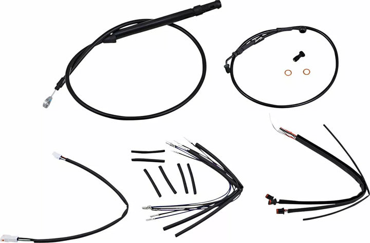 Komplet kabel-/linjestangsinstallationssæt, sæt inkluderer udvidet bremselinie, udvidet koblingskabel/koblingslinje, udvidede gashåndtag/tomgangskabler efter behov, og alle nødvendige ledninger udvides U.S.A., sæt er baseret på at bruge 2 ヤ Risers med apehanger-stil styr.