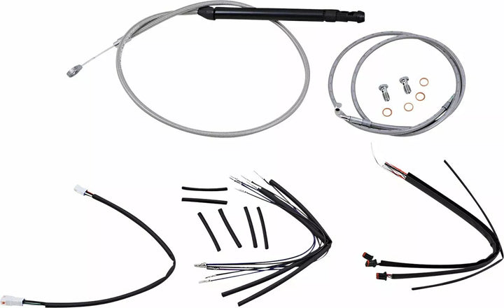 Komplet kabel-/linjestangsinstallationssæt, sæt inkluderer udvidet bremselinie, udvidet koblingskabel/koblingslinje, udvidede gashåndtag/tomgangskabler efter behov, og alle nødvendige ledninger udvides U.S.A., sæt er baseret på at bruge 2 ヤ Risers med apehanger-stil styr.