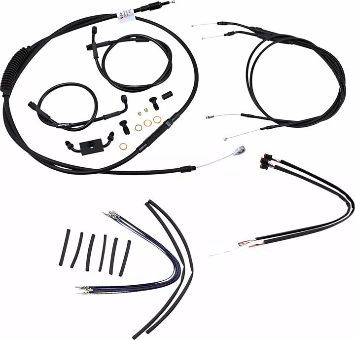 Komplet installationssæt til burly abe-bøjler, sæt inkluderer udvidet bremselinie (medmindre det er angivet), udvidet koblingskabel/koblingslinje, udvidet gashåndtering/tomgang kabler som krævet og alle nødvendige ledninger, bremsens indre linjer, whhen inkluderet, felemudd, ydre fletning, dressur kits genanvendelse af lager throttle-by-wire-haven, kit er baseret på at bruge 2 "Risers med APE HRE HANGER-TYSE HADEBARS.