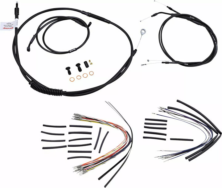 Komplet installationssæt til burly abe-bøjler, sæt inkluderer udvidet bremselinie (medmindre det er angivet), udvidet koblingskabel/koblingslinje, udvidet gashåndtering/tomgang kabler som krævet og alle nødvendige ledninger, bremsens indre linjer, whhen inkluderet, felemudd, ydre fletning, dressur kits genanvendelse af lager throttle-by-wire-haven, kit er baseret på at bruge 2 "Risers med APE HRE HANGER-TYSE HADEBARS.