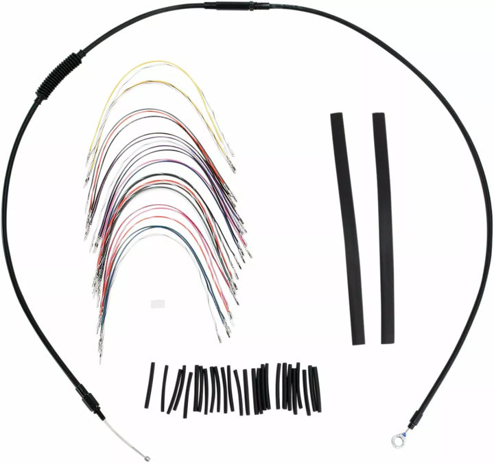 Komplet installationssæt til burly abe-bøjler, sæt inkluderer udvidet bremselinie (medmindre det er angivet), udvidet koblingskabel/koblingslinje, udvidet gashåndtering/tomgang kabler som krævet og alle nødvendige ledninger, bremsens indre linjer, whhen inkluderet, felemudd, ydre fletning, dressur kits genanvendelse af lager throttle-by-wire-haven, kit er baseret på at bruge 2 "Risers med APE HRE HANGER-TYSE HADEBARS.