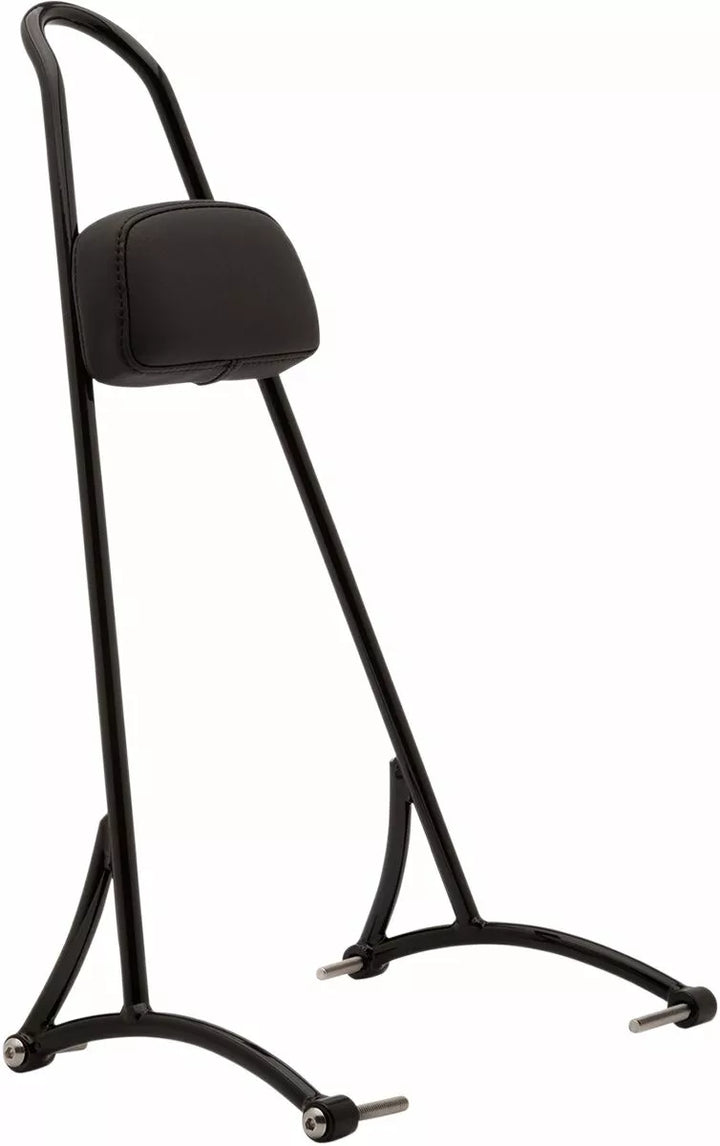 Klassisk-stil, sissy bar i ét stykke, robust, tig-svejset stålkonstruktion, montering til uden for fenderskinner for nem installation og fjernelse, inkluderer kompakt sort vinylpar (måler 6 "W x 3-1/4" H)