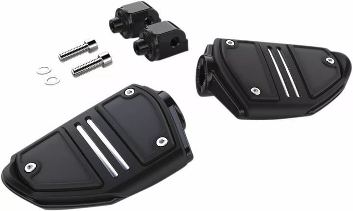 Større end fodpeg, men mindre end gulvplader, disse fodstøtter er perfekt størrelse, justerbar positionering for maksimal komfort og ren stil, ingen ændring krævet, let bolt-on installation