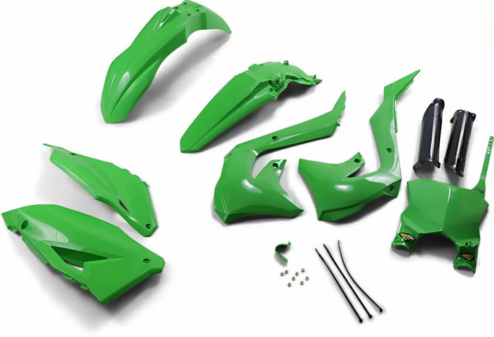 Inkluderer Performance Front Fender, Stadium Front Number Plate, PowerFlow Radiator Shudss, sidepaneler, PowerFlow bageste fender og gaffelvagter (medmindre andet er angivet), injektionsstøbt til præcis pasform og finish, lavet i U.S.A.