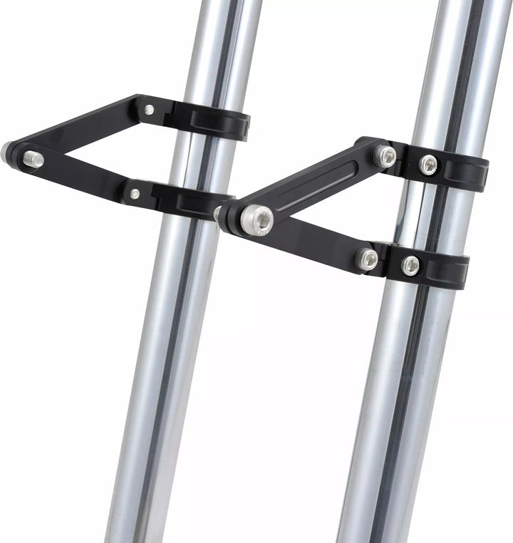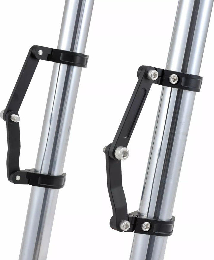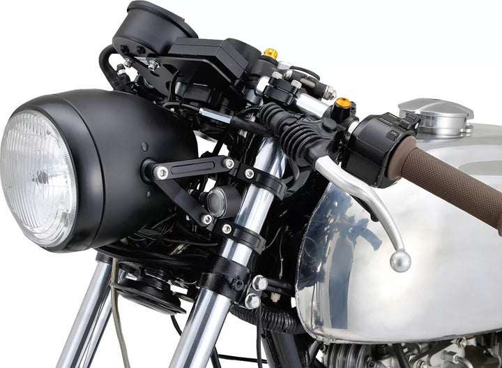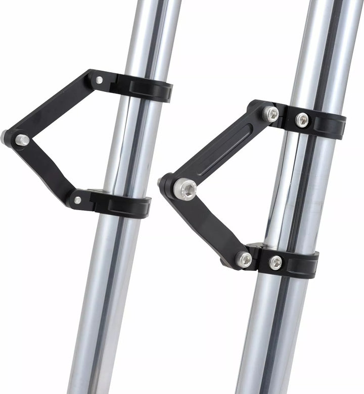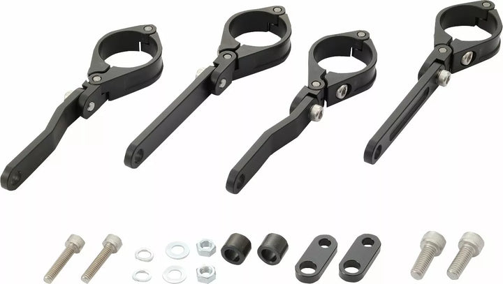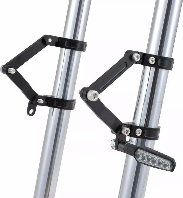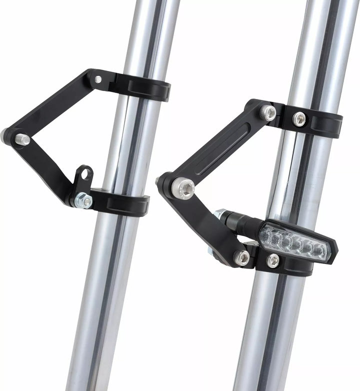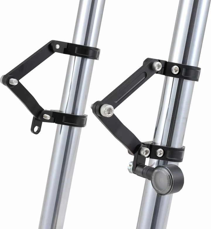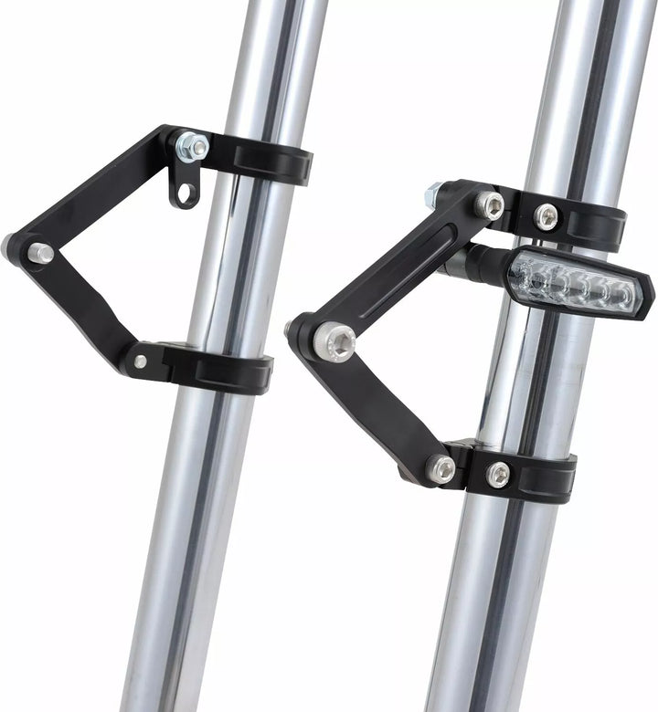 Justerbar dobbeltakse forlygtebeslag lavet af CNC-bearbejdede aluminium i sort, gaffelklemmen kan justeres lodret, hvilket gør det muligt at justere forlygten
