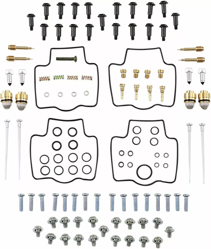 Alle membraner og pakningskomponenter er fremstillet af det samme materiale af høj kvalitet som OEM, inkluderer alle nødvendige O-ringe, pakninger, jetfly, nål, blandingsskrue, floatskålskruer, floatventilventilnål inkluderet), NBR-gummimateriale bruges på alle O-ring og gummipakninger; NBR har fremragende modstand mod ethanolen, der er brugt i dagens brændstof, komponenter inkluderet i kittet er baseret på amerikanske modeller, og skøn skal bruges, når man forsøger at installere kittet på en ikke-US-model, OEM-jetstørrelser og dias nåleesledle