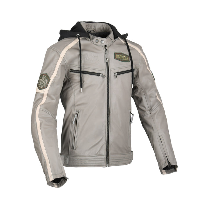 Difi Mc-Skinnjacka Detroit 2 Grå med dragkedjor framtill, huva och dekorativa detaljer. Perfekt för motorcykelåkning och stil.