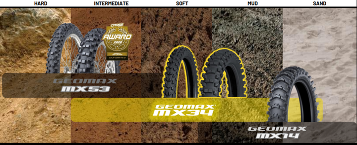 Aspect_ratio: 100.0 Jord: Medium-blød-mudhomologation: NHS (ikke til motorvejstjeneste) Position: Bagerste RIM_DIAMETER: 18 Speed_Index: M <130 km/t TIRE_CATEGORY: MX, SX TIRE_FAMILY: 59.09. MX34 TIRE_STRUCTURE: X-PLY TIRE_WIDTH: 100 TUBELESS_OR_TUBERTY