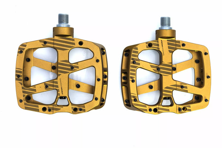 Vores nye aluminium plus pedaler leverer cykeltraktion, dræber æstetik og en slank, rock-deflekterende profil. Ved at holde det originale 22-polede layout, der blev brugt på vores første LG1-pedaler, var vores nye plus aluminiumspedaler bruger nøjagtige de samme bitt pedaler, der var så velkendt. Lejer og en stålaksel. Fuldt genopbygget., Materiale: bearbejdet, anodiseret aluminium. , Stifter: 5 mm fyr, stålstifter. , Størrelse: 100 x 110 mm platform designet til at aflede klippestrejker., Spindel: varmebehandlet stål., Vægt: 441 g.