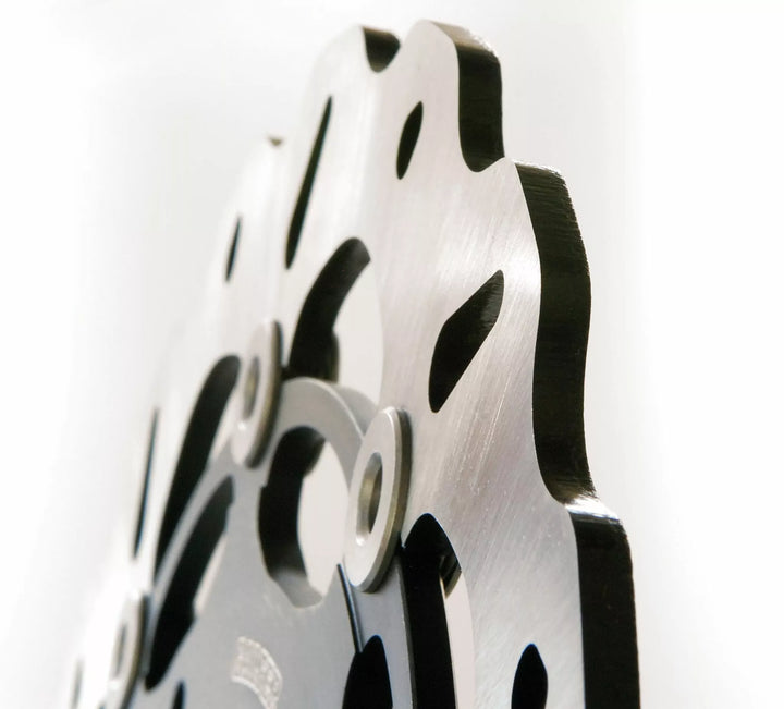Fremstillet af 420 rustfrit tier-1 stål med høj kulstofniveau, laserskæring, aldrig stemplet, hver rotor er individuel varmebehandlet og dobbeltkisk parallel jord til at svage perfekte fladhed, bølge ᆴ Designlys til lavere operationer ved ekstreme temperaturer ved ekstreme huletemperaturer ved ekstreme koppetemperaturer. Lagerrotor, for maksimal bremseydelse og lang levetid, anbefaler Galfer at bruge galferbremseklodser med galferrotorer.