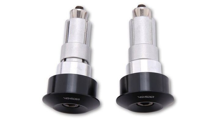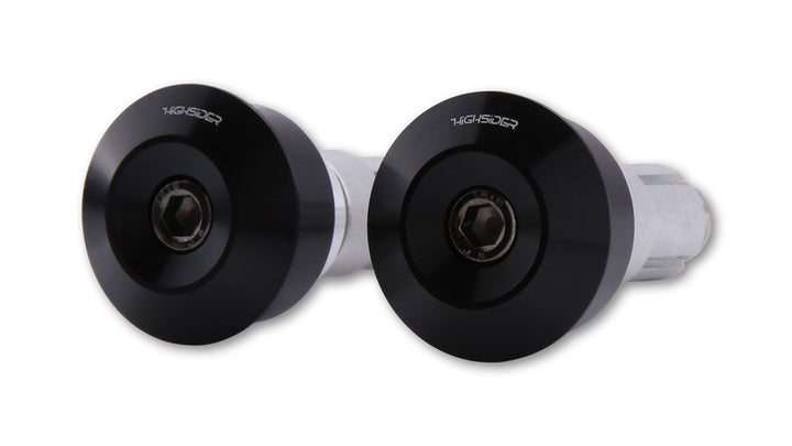 Søjle-slutvægte lavet af krombelagt eller sort aluminium med kromplaceret eller sort central skrue. Universal Fit til styret inden for diameter fra 12 til 22 mm - derfor for de fleste 7/8 tommer og 1 tommer aluminium eller stålstyr. Alle hængende barens spejle af mærket Highsider og Shin Yo kan monteres med eksterne klemmer.