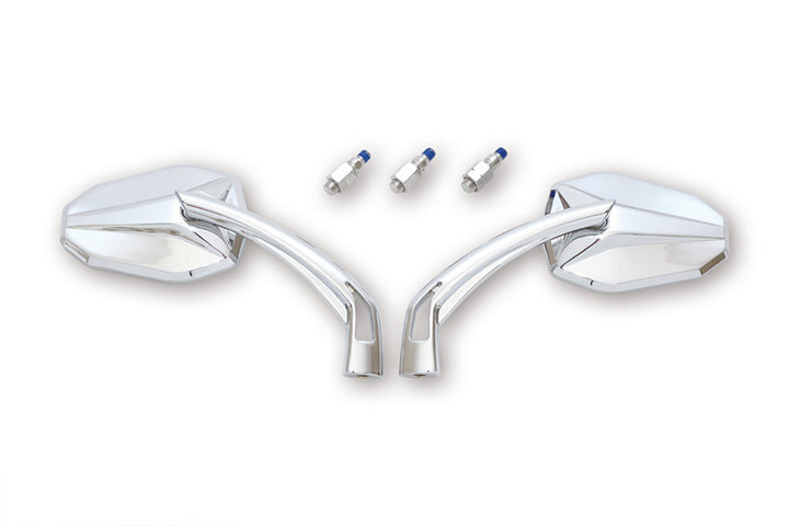 Elegant universelt spejl med et aluminiumshoved inklusive ekstra adapter M10 x 1,25 mm med venstre tråd til Yamaha, E-godkendt.