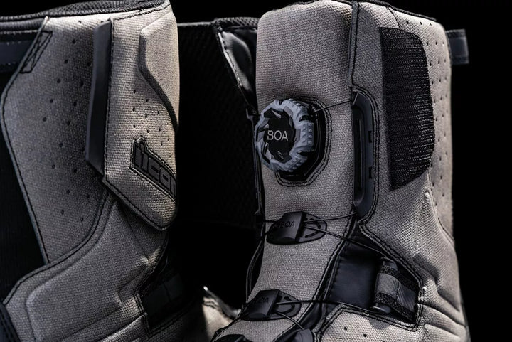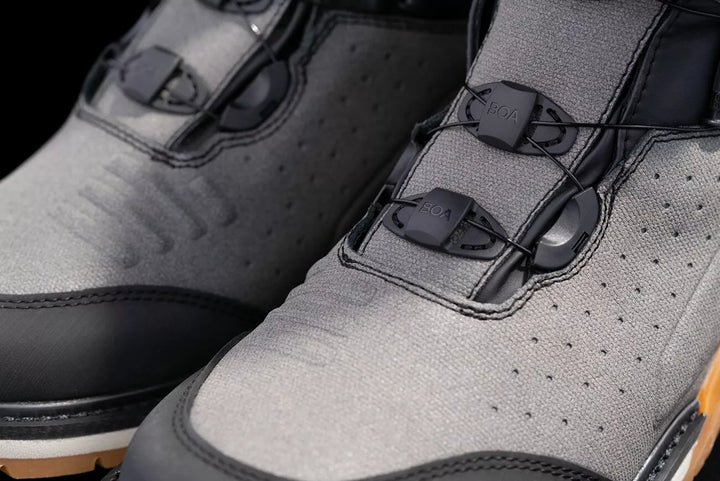 Øvre består af techtuff læder, forstærket shinplade giver dækning til BOA -snøresystemet for optimeret pasform, begivenhed Vandtæt/åndbar foring holder det indre tørre, mens D3O -ankelindsatser giver øget skygge dækket konstruktion er en kombineret skumpatning, og en olie- og slipbestandig gummibundsenhedsenhedsenhedsenhedsenhedsenhedsenhedsenhedsenhedsenhedsenhedsenhedsenhedsenhedsenhedsenhedsenhedsenhedsenhedsenhedsenhedsenhedsenhed