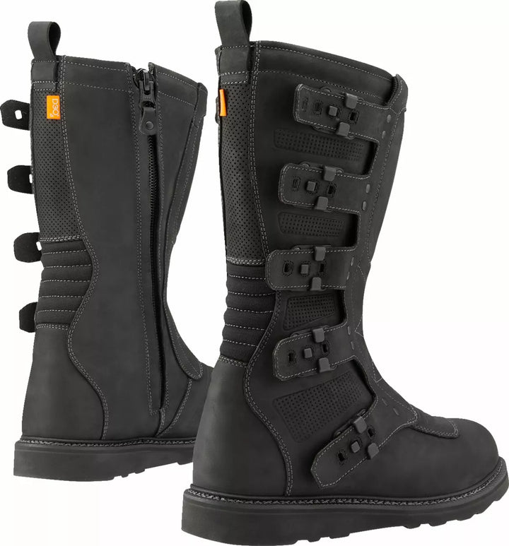 Premium læder øvre øvre kombineret med olie/slipbestandige outsoles for robust stil, fem-stropp chassis giver mulighed for en behagelig pasform, side lynlås for let tændt og slukket, hårde forstærkede skinnebenplader og slagresistent nylonspænder, intern D3 din tur tager en tur til værre, hi-rebound Eva Foam Insoles giver hele dagen motorcykel ridning af komfort og støtte, forstærket shifter overlay overlay overlay.