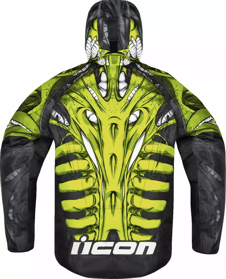 Airform Manik'r ™ grafik foran og bagpå jakke, 420d polyester chassis med 300D polyester intern forstærkning, pu-coated shell-materiale med DWR finish, D30® aftagelig Viper-rygbeskytter; Albue og skulderpåvirkningsbeskyttere, bungee-ledningsstil Drawstring hætte, Airfly ™ Center Front Mesh-panel med bryst og lynlås med ryggen, udluftede manchetlynlås, rygbeskytter en 1621-2 niveau 1