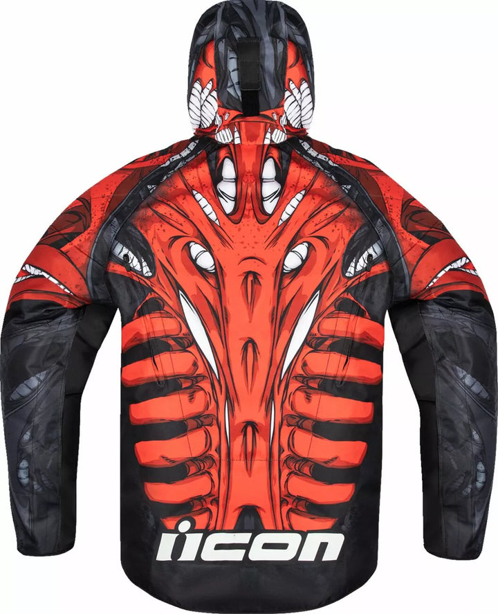 Airform Manik'r ™ grafik foran og bagpå jakke, 420d polyester chassis med 300D polyester intern forstærkning, pu-coated shell-materiale med DWR finish, D30® aftagelig Viper-rygbeskytter; Albue og skulderpåvirkningsbeskyttere, bungee-ledningsstil Drawstring hætte, Airfly ™ Center Front Mesh-panel med bryst og lynlås med ryggen, udluftede manchetlynlås, rygbeskytter en 1621-2 niveau 1