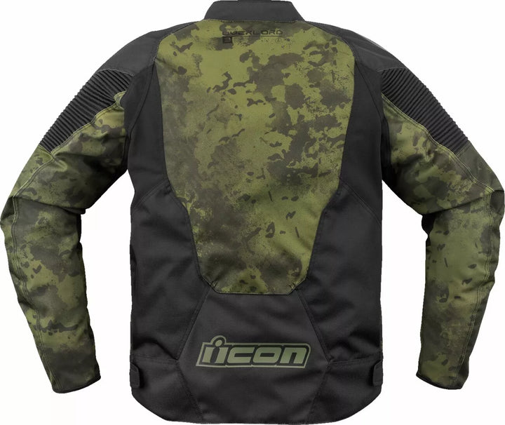 Subtile camo -tryk på Overlord3 Magnacross -jakken lavet af et holdbart 300D -polyesterchassis, inde i jakken forstærkes med 300D polyester, D30® aftagelig Viper -back -beskytter; Albue og skulder T5 EVO Impact Protectors, Pre-Curved Arms and Waist Justerers, Airfly ™ Center Front Mesh Panel med integreret nedre bagudstødningsventil