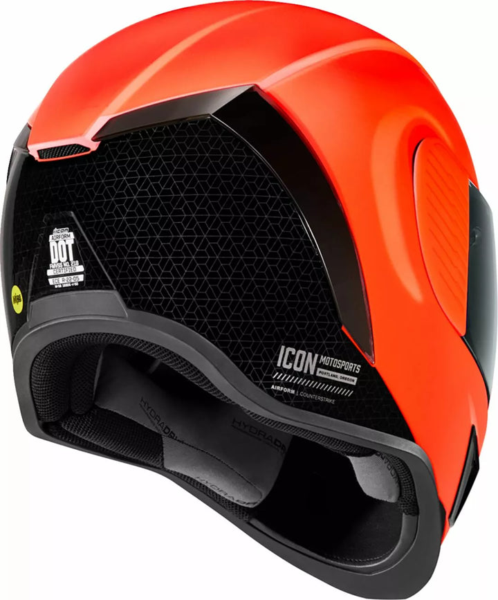 Injektionsstøbt polycarbonatskal til styrke, Prolock ™ Positive Shield Locking System, kontinuerligt udluftningssystem, fagfrit ikonoptik ™ skjold med Rapid-Reale ™ -system, skulpturelt halsrulle, intern luftstrømgeometri, den indre drop hield visor skal kun bruges, mens hovedfladen er i den fuldstændigt lukkede position, fjernelse af den fjernede leeder, der defler, fjernelse af rysten Hydry ™ Fugtvejr foring, interne højttalerlommer fungerer med Icon's R.A.U. Bluetooth -enhed, inkluderer Clear & Dark Smoke Icon Optics ™ Shield, Inkluderer Dark Smoke Dropshield ™, inkluderer Black Airform Chin Vent ™