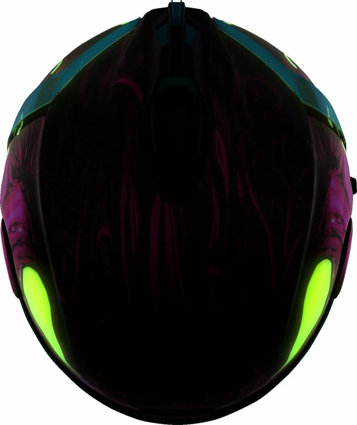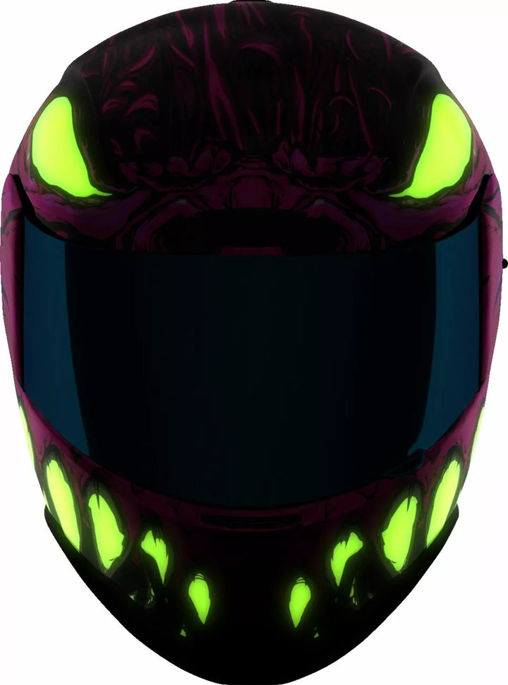 Kontinuerligt udluftningssystem, fagfrit ikonoptik ™ skjold med Rapid-Release ™ -system, injektionsstøbt polycarbonatskal til styrke, intern luftstrømgeometri, skulptureret halsrulle, Prolock ™ Switch, den udvendige med låseskivende swequ Visor, skal kun bruges, mens hovedfladen er i den fuldt lukkede position, fjernet støbt pustet med locking, fjernelse. 3-delt fugtvæberforing, interne højttalerlommer fungerer med Icon's R.A.U. Bluetooth -enhed, inkluderer Dark Smoke Dropshield ™ og Rubatone Black Speedfin ™