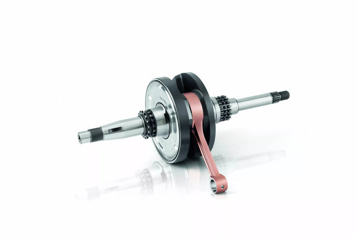 Crank -webs med fuld cirkelform og 2 alumunumindsatser for at reducere vægten, forbinde stang med 2 snit og 2 huller, krumtapsanlæg fuldt slibet