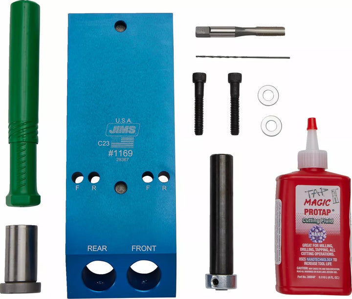 Installationssæt inkluderer Fixte, Drill Bit, Spot Face Bit og Thread Tapping Tool, Simply Drill, Spot Face, Tap og Installer komprimeringsudgivelsesventiler, fungerer på forsiden og baghovedet, med eller uden ventiler installeret, til stor tomme eller høj komprimeringskam