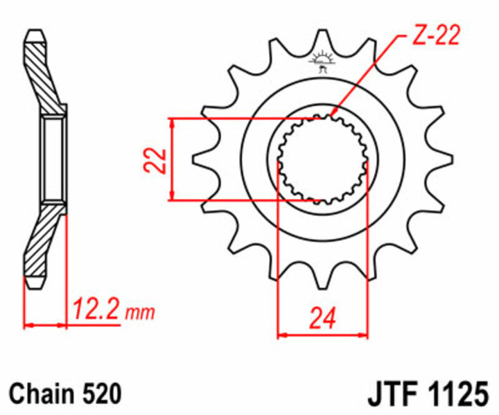 JT Sprocks stålstandard foran tandhjul 1125 - 520 JTF1125.16