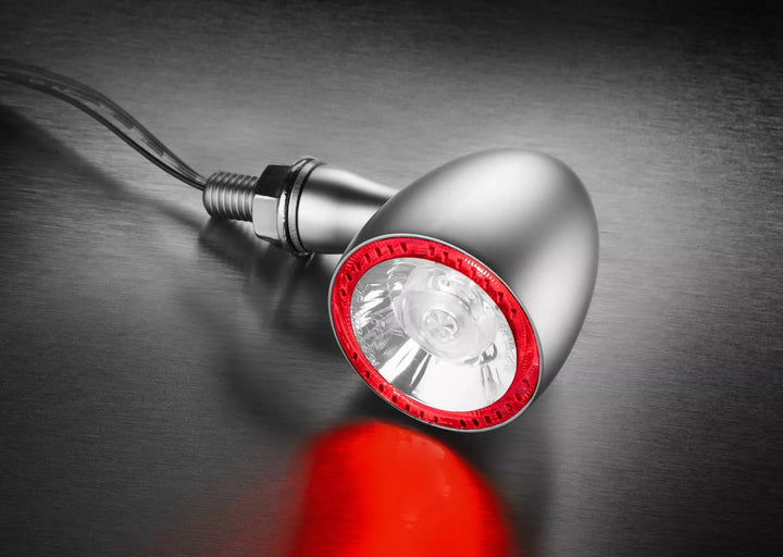 Bullet 1000® DF LED -indikator 3 i 1, sort, bageste, indikator og bremselys på begge sider. Klassisk møder Hightech: Bullet 1000® RB kombinerer og erstatter de originale bag- og bremselys ved motorcykelens hale. Metalboliger af høj kvalitet passer til enhver krævende cykelstil som en juvel. Den homogene cirkulære røde baglysring tilføjer et spektakulært udseende. , Den strålende bremselys holder følgende trafik på afstand og sikrer således mere sikkerhed på vejen. Foruden testene Kellermann Highpower LED -teknologi Special til denne serie udviklet Kellermann HPT® Light Technology sikrer en homogen cirkulær stråle, hvilket bringer det samlede indtryk af produktet til perfektion. Fås i Chrome eller Black Bullet 1000® RB kan kombineres med andre indikatorserier f.eks. Bullet 1000® eller Miniature Atto® -serien., Velegnet til 12 volt DC -applikationer., Europæisk designbeskyttelse.