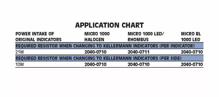 , Når man bruger mikro 1000 DF og en let kontrolpære, er en yderligere modstand ved 33 ohm (del #2040-0712) til baglyset og en yderligere modstand ved 7,5 ohm (del #2040-0711) til bremselyset.