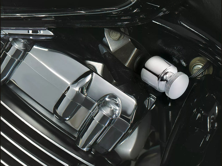 Chrome cover installeres over lagerplastikknappen, forbedrer udseende og er lettere at bruge