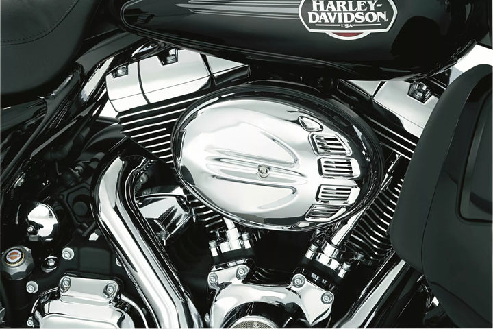 Stilfuld opgradering til OEM Air Cleaner Assembly, Chrome Grille -åbninger tillader yderligere luftstrøm, kontureret design tilføjer et racy touch