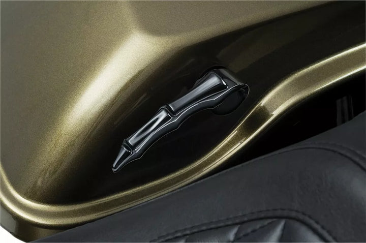 Slank direkte erstatning for fabrikssaddlebag -låghåndtaget, der tilbyder forbedret ergonomi og uhyggelig styling, lavet af kvalitet A380 aluminium