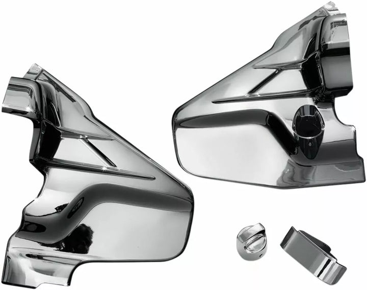 Konverter dine lager Black Transmission Covers til Chrome eller udskift et sæt ældet OEM -kromovertræk til dette stilfulde Louvered Design, praktisk dip stick -adgang giver dig mulighed for nemt at kontrollere dit olieniveau uden at fjerne dækslet