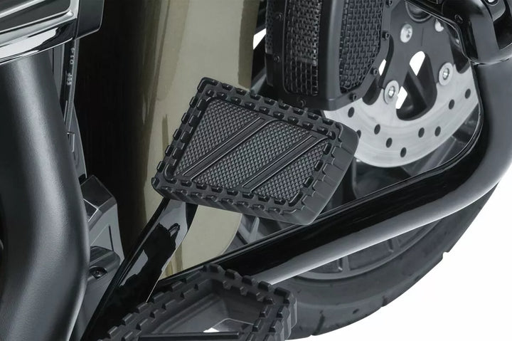 Direkte udskiftning for FL-, FX- og XG-modeller, hård enkelt aluminiumstøbning med elastisk perleblæst sølv- eller satinfinish., Hørte taske topoverflade leverer ideel trækkraft i enhver ridetilstand