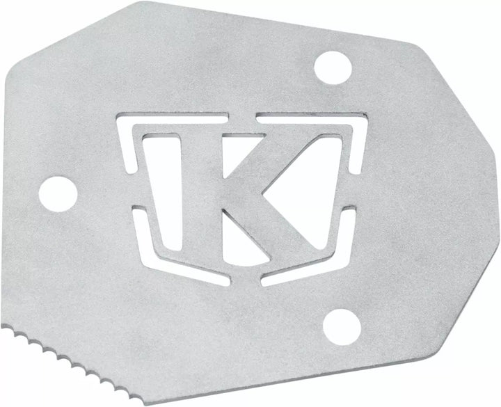 Tilvejebringer yderligere overfladeareal for at forhindre kickstand fra at synke ned i bløde overflader, CNC bearbejdede 6061-T6 aluminiumstop med laserskåret rustfrit stål bundplade, den ydre kant kan kan bruges til Breide på flids på FLTR. Bundpladeannoncerne trækkraft for at hjælpe med at implementere kickstand under våde eller mudrede forhold, inkluderer tre M5 -skruer