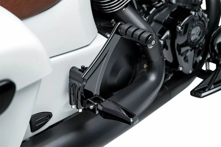 Allows Installation of Kuryakyn Adjsutable Passenger Pegs On Chief, Chieftain, and Dark Horse Models, Can Reuse Stock Passenger Pegs On Any Kuryakyn Pegs Using Spined Adapters, Sold Separately, Relocates Passenger Peg Location to a More Compa With Gloss Black Finish, Adjustable Passenger Pegs, Part # 1620-1315 and 1620-1725 Sold Separately