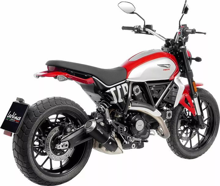AISI 304 Rustfrit stål, høj temperaturbestandig "LV" -pinde inkluderet i kassen, laser ætset Leovince -logo, skud sprængt endehætte, laserskåret beslag, bageste stålmesh, kulfibervarme i pakken
