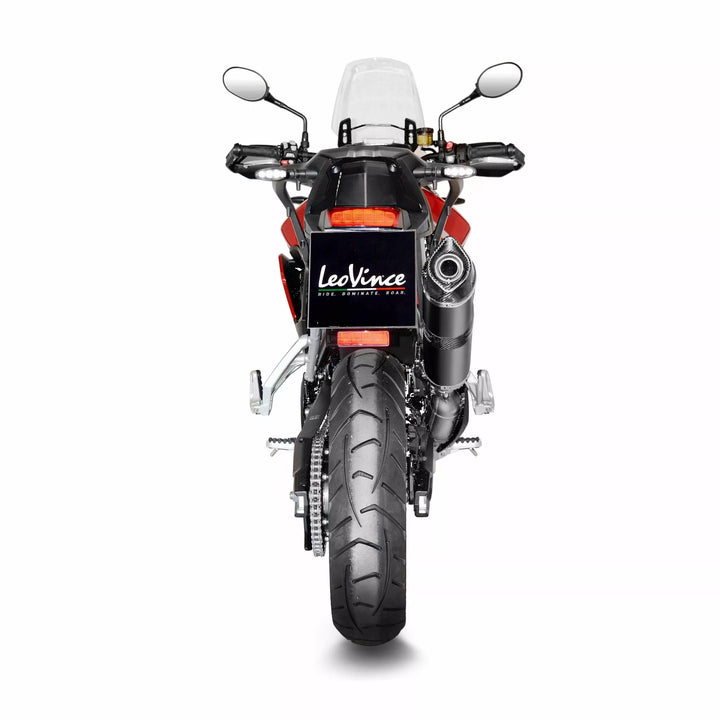 LV One Evo Black Edition Rustfrit stål er syntesen mellem tradition og modernitet. Det kombinerer Leovince Classic Style -udseende og innovation i forskningen af de mest fungerende og lette materialer. Resistent pakning (1.650 ᄚ f), fuld kulstoffastende rem, laser ætset Leovince -logo